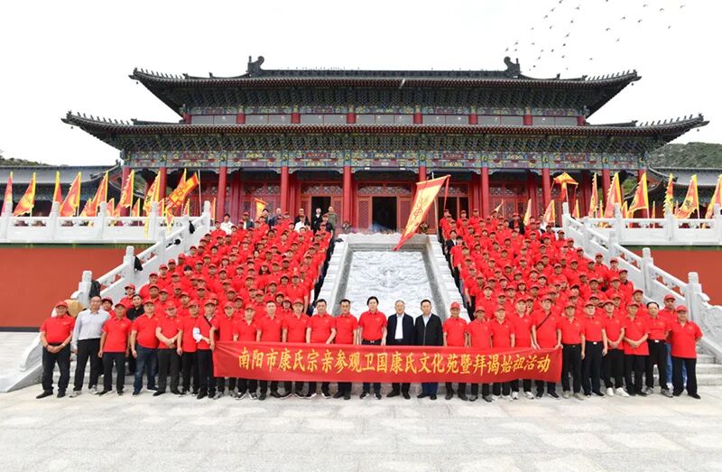 宗亲们身着印有“南阳市康氏文化研究会”字样的红色T恤,头戴红帽,心情激动,满怀对始祖的敬仰与对文化苑的期待。
